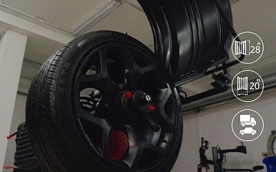 Позволяет обслуживать колеса легковых автомобилей, а также колеса легкового коммерческого транспорта.
