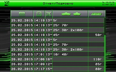 Вы можете отследить время работы, размер обслуженных колес, тип установленных грузов, массу грузов.